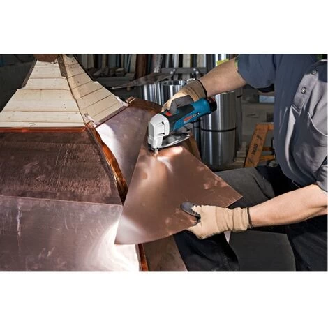 Ciseaux de fer-blanc sans fil GSC 12V-13. 4 fois plus rapide travers le métal – sans aucun effort. Jusqu’4 fois plus rapide pour les coupes droites et courbes que les ciseaux de fer-blanc manuelles conventionnelles. Extr?mement puissant : Coupe sans effort jusqu’1,3 mm dans le métal. Incroyablement léger (seulement 1,4 kg) et le design le plus compact pour un travail confortable et sans fatigue. Technologie unique lithium-ion Bosch Premium pour une durée de vie plus longue et une autonomie de batterie imbattable. Bosch Electronic Cell Protection (ECP): Prot?ge la batterie contre les surcharges. Surchauffe et décharge profonde. Extr?mement robuste : Enti?rement fonctionnel m?me apr?s une chute de 1 m sur le béton grâce au boîtier flexible Durashield. Indicateur d’état de charge de la batterie pratique avec 3 LED. Couteau réversible avec 4 ar?tes de coupe pour une durée de vie plus longue. Jeu de coupe réglable entre les couteaux pour s’adapter l’épaisseur du matériau respectif. Chargeur rapide GAL 1230 CV (1 600 A00 R44). Clé Allen. L-BOXX 102 (1 600 A00 1RP). 1/1 insert L-BOXX pour appareil et chargeur (1 600 A00 2V0). 2 x batterie GBA 12V 2,0 Ah (1600 Z00 02X).