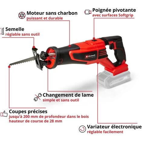 La scie sabre universelle sans fil TE-AP 18/28 Li BL-Solo Einhell fait partie de la gamme flexible et combinable à l’infini Power X-Change.