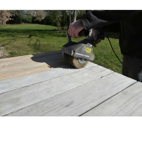 PACK composé des références FARTOOLS 115027 + 110898 + 110886 + 110899 : REX120C RENOVATEUR EXTERIEUR / BROSSE METALLIQUE DE PRECISION / BROSSE A LANIERES ABRASIVES / BROSSE A LANIERE ABRASIVE DE PRECISION Pour le décaper, dégriser, décrasser du bois, du métal ou de la pierre, sur surfaces planes ou complexes, y compris dans les rainures ou angles difficiles d’acces