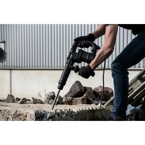 Le marteau piquer professionnelle FERM HDM14P vous permet de démolir de manière simple des sols. Démolir le béton et d’enlever facilement les joints et carreaux des murs. Cette puissante massette a une puissance de 12 watts. 12 différents niveaux de ciseau et une puissance de combativité de 14 joules. Un outil électrique très puissant ! La poignée latérale supplémentaire et la câble d’alimentation en caoutchouc extra long de 5 mètres. garantissent un confort d’utilisation optimal : plus d’adhérence. de stabilité et de liberté de mouvement.