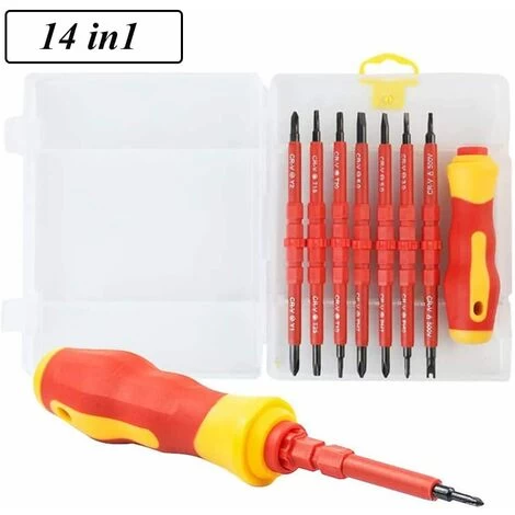 Le paquet contient: un tournevis électrique isolé 14 en 1 et une boîte en plastique.