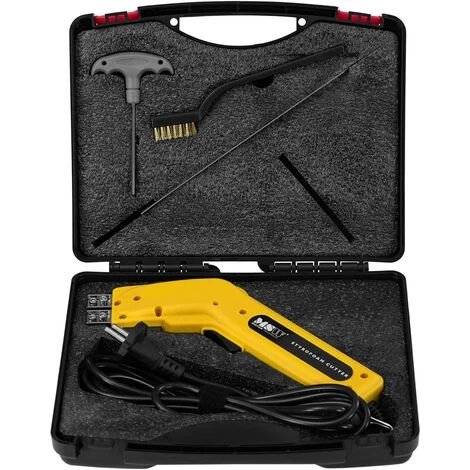 Le découpe-polystyrène MSW-STC-200 de MSW est idéal pour couper les matériaux d’isolation, pour les travaux fins comme le modélisme, pour réaliser des saignées et passer des câbles ou tuyaux et bien d’autres applications encore. L’appareil glisse sans résistance dans les matériaux isolants tels que le polystyrène expansé (PSE) ou extrudé (XPS). C’est possible grâce à sa température de service élevée qui se règle au moyen d’un bouton et peut atteindre jusqu’à 600 °C. La poignée ergonomique et le long câble d’alimentation ( m) de l’appareil issu de notre gamme d’outillage professionnel favorisent un travail très flexible. L’envoi comprend une lame droite et différents accessoires.