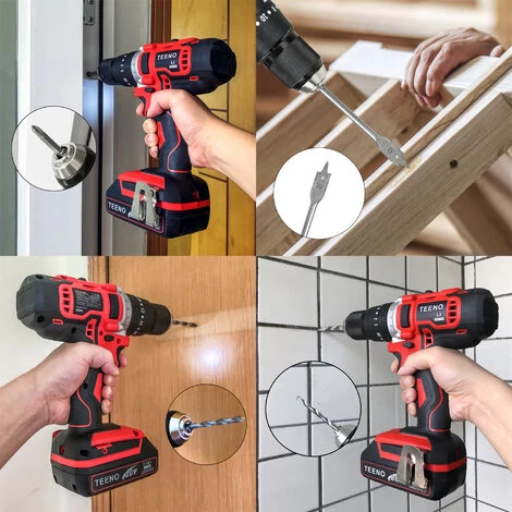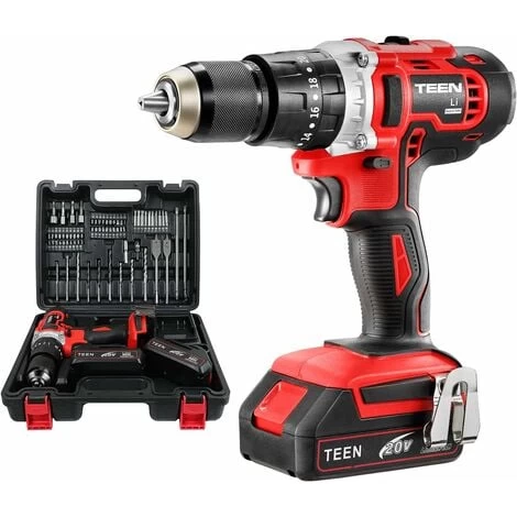 [ Travail Plus Efficace avec 2 Batteries ] – 2 batteries de 2,0 Ah peuvent être rechargées rapidement, en 1 heure; Perceuse Percussion Sans Fil TEENO fournit 45Nm de couple max