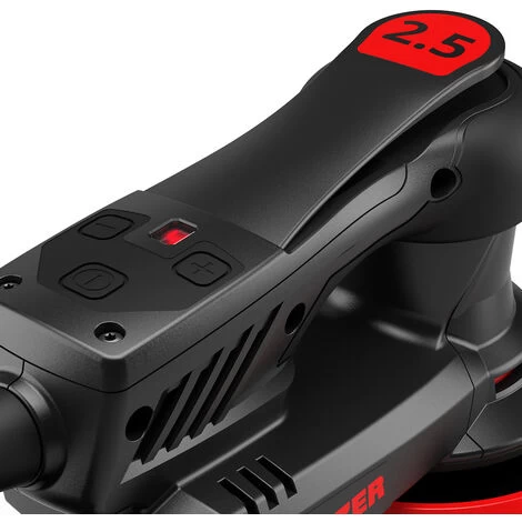 - Ponceuse excentrique, puissante, compacte avec course de 2,5 mm, idéale pour les travaux de ponçage et de polissage fins avec évacuation efficace de la poussière par le plateau de ponçage à perforations multiples avec des trous radiaux