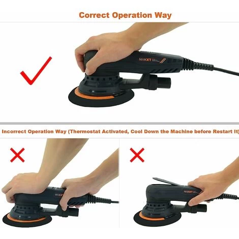 Interrupteur MARCHE/ARRÊT – Facile à utiliserLe bouton parfaitement positionné empêche la ponceuse d’être allumée ou éteinte accidentellement. Affichage LED pour afficher le niveau de vitesse. Présélection de vitesse en continu, vitesse constante même sous charge | Conception de hauteur unique et raisonnablePour éviter de toucher et de rayer la pièce lors du ponçage, nous nous engageons à développer une taille plus ergonomique et raisonnable pour les utilisateurs. | Grand protecteur de câbleProtégez le câble, pour une durée de vie plus longue |