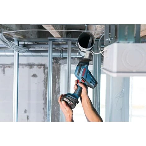 La scie sabre sans fil GSA 18V-LI Bosch Professional offre à l’utilisateur les meilleures performances de coupe dans sa catégorie : capacité de coupe par charge : jusqu’à 100 poutrelles en sapin (100 x 100 mm). De plus, le système EMP (protection électronique du moteur) protège le moteur contre les surcharges et garantit ainsi une longévité élevée. Manipulation aisée : changement de lame simple et rapide grâce au nouveau mécanisme SDS.