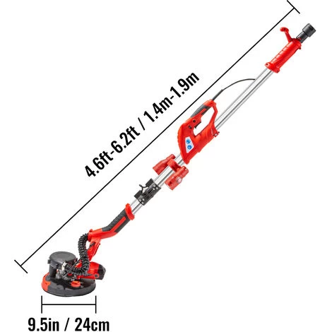 Cette ponceuse orbitale filaire comprend un cadre télescopique, extensible de 1,4 m à 1,9 m, adapté à différents espaces de travail, le meulage du plafond est facile. Et l’outil est pliable, pratique pour le transport et le stockage.
